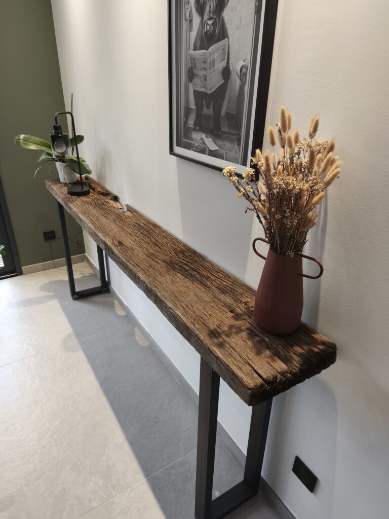 Chaque meuble est une pièce unique, mêlant bois et métal avec expertise.