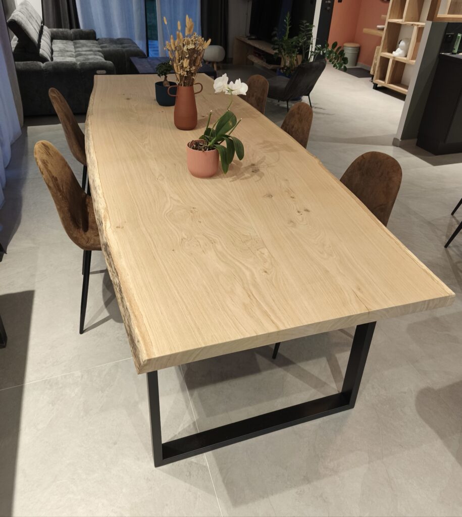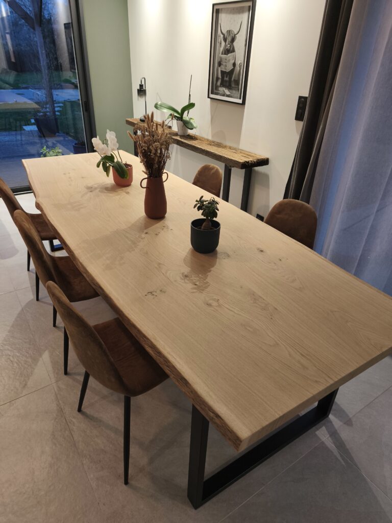 Table en chêne massif vosgien et métal noir